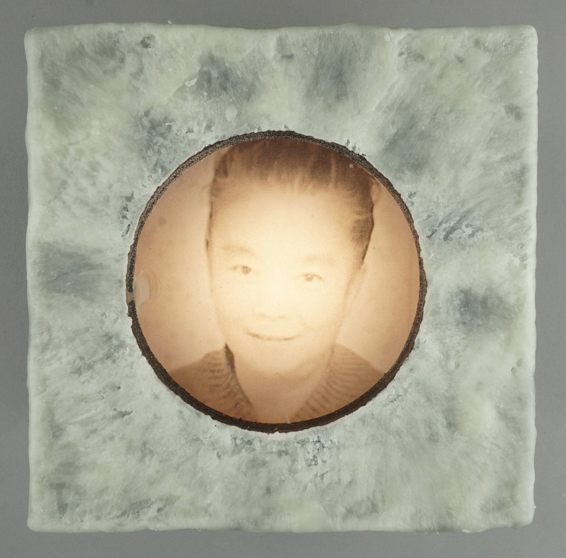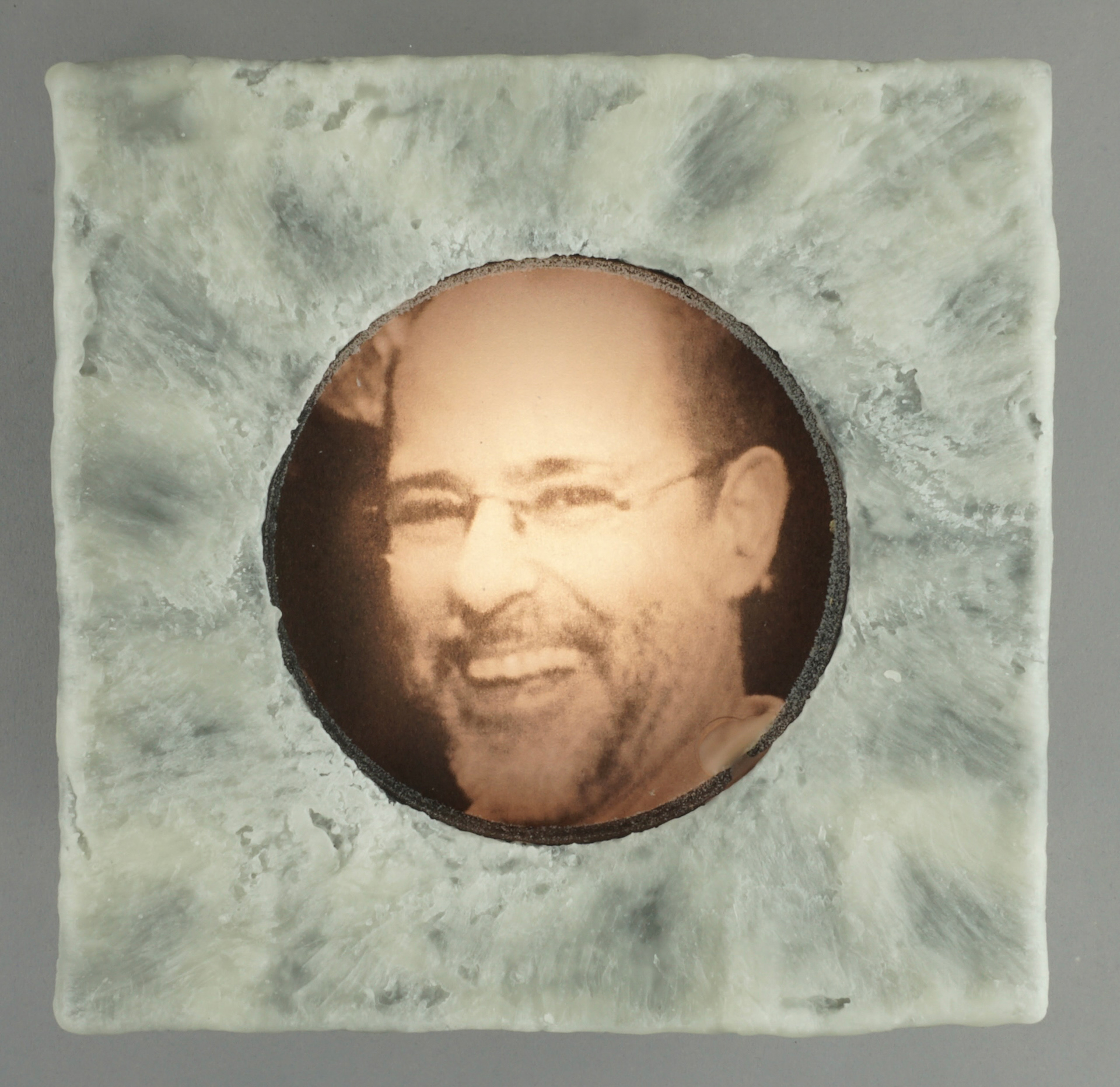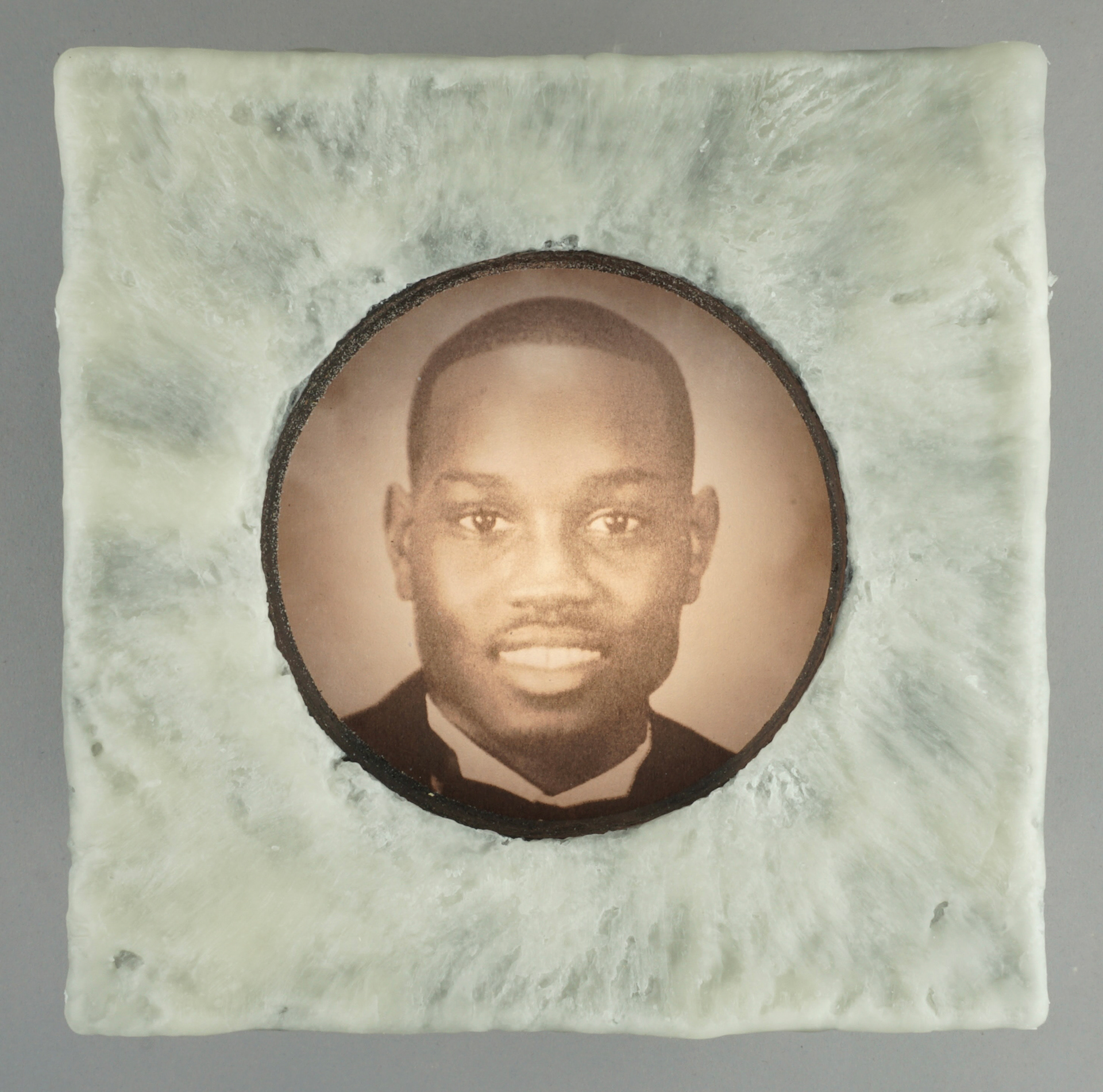 For the second body of work, transparencies of found portraits of victims of hate crimes are displayed in wood light boxes. Brushed wax is on the face of the lightboxes once again referencing the candle and its symbolic reference of illumination and truth. As part of this section of the installation, graphs and statistics were projected over the installed group. It is an attempt to show that they are real people and reveal how these real people are, unfortunately, so often reduced to a statistic, which is a fact that both the viewer and the work bear witness to.