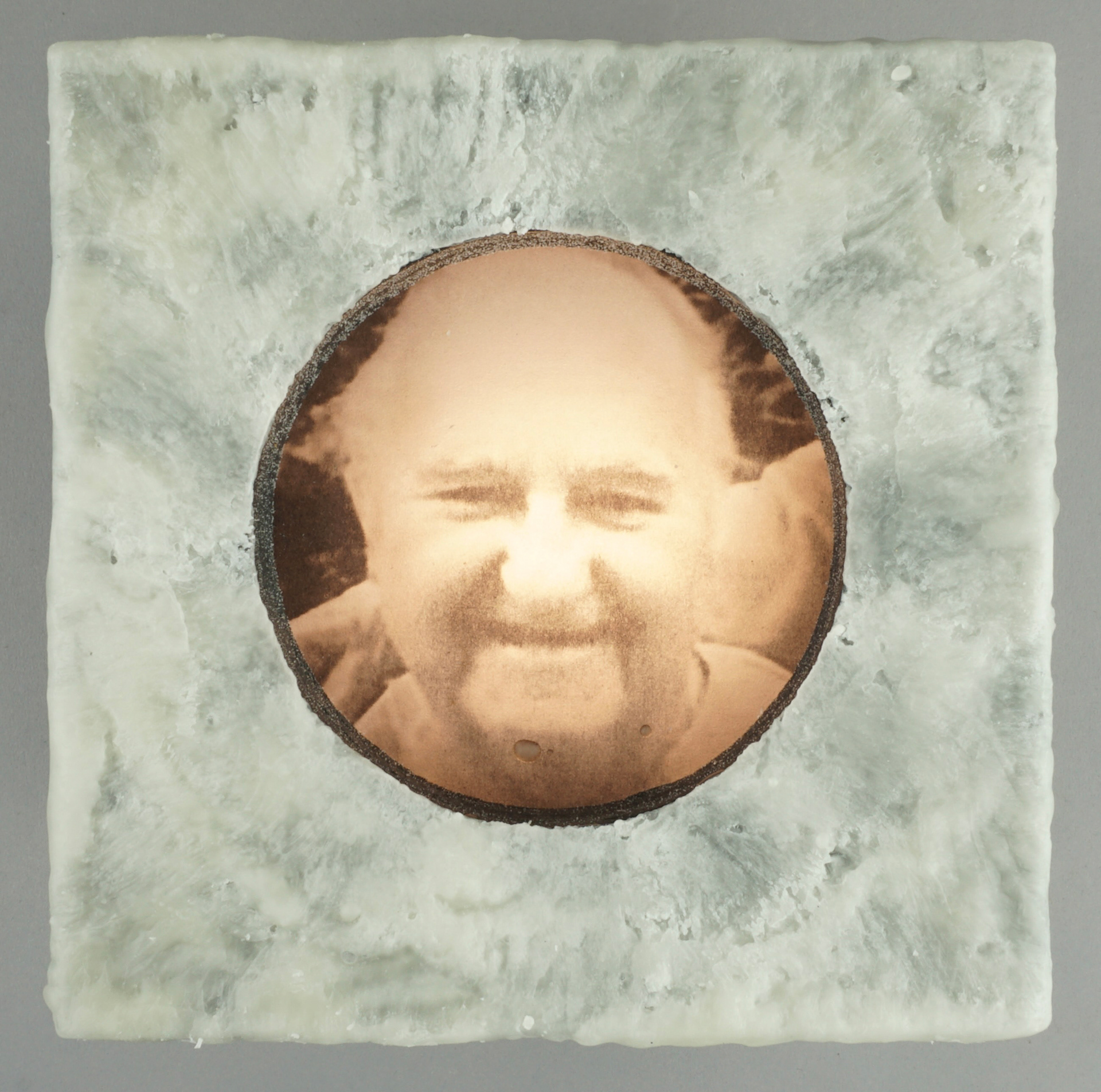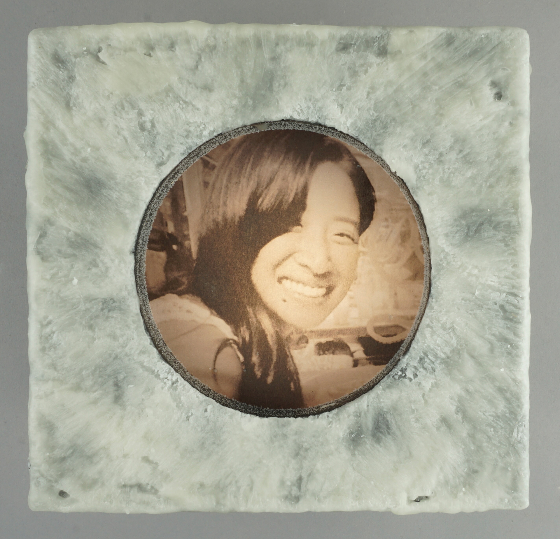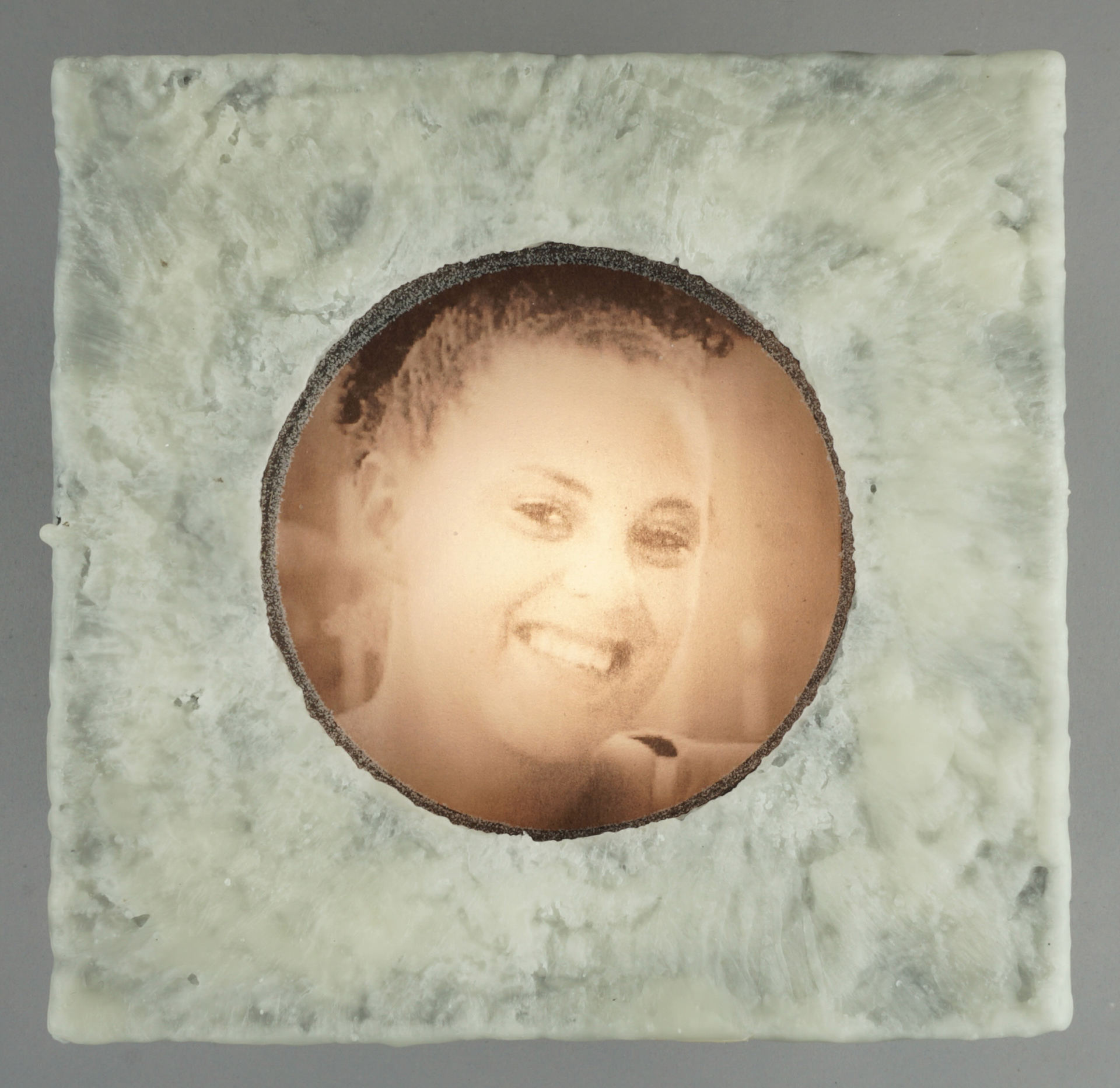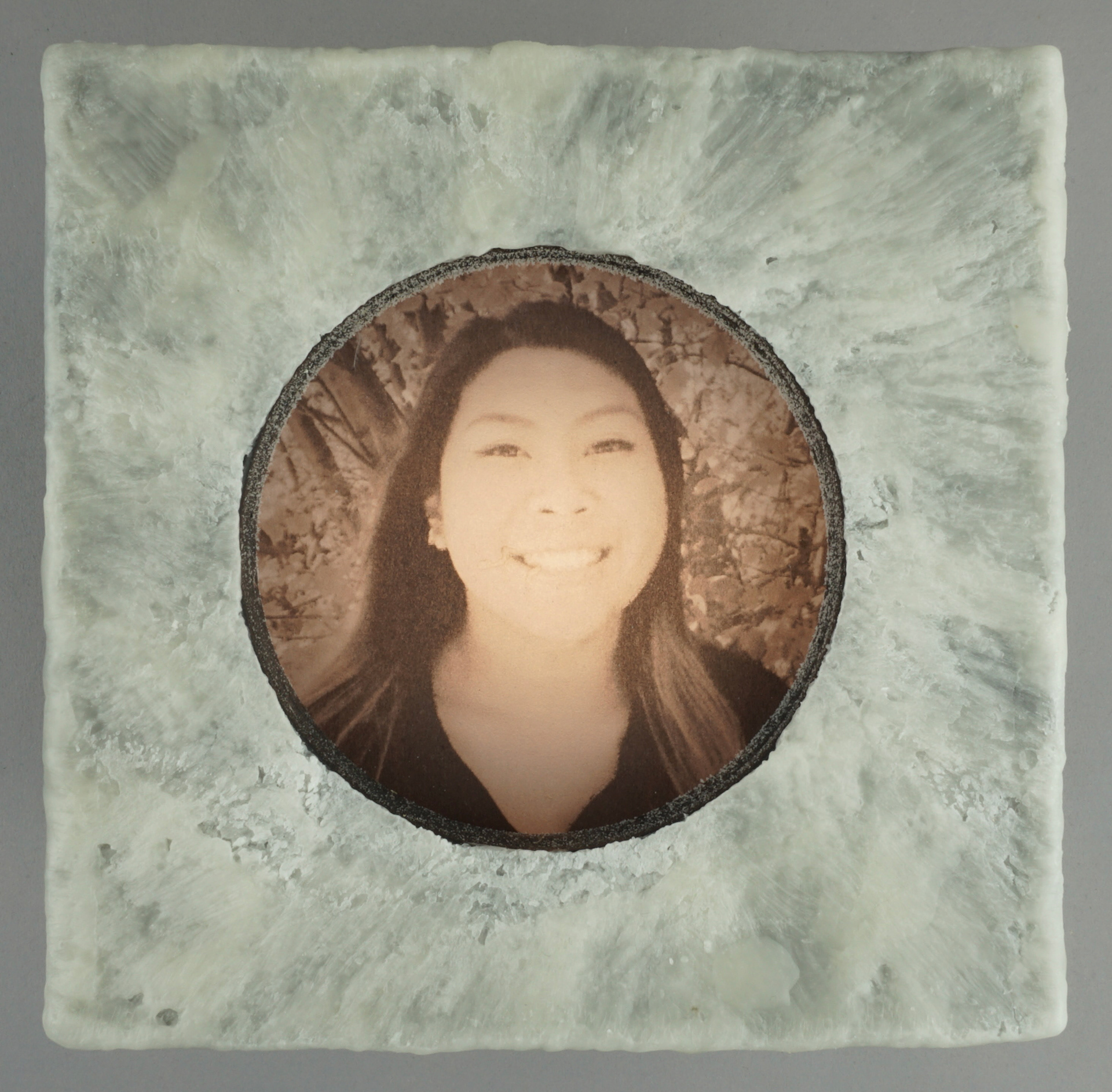 For the second body of work, transparencies of found portraits of victims of hate crimes are displayed in wood light boxes. Brushed wax is on the face of the lightboxes once again referencing the candle and its symbolic reference of illumination and truth. As part of this section of the installation, graphs and statistics were projected over the installed group. It is an attempt to show that they are real people and reveal how these real people are, unfortunately, so often reduced to a statistic, which is a fact that both the viewer and the work bear witness to.